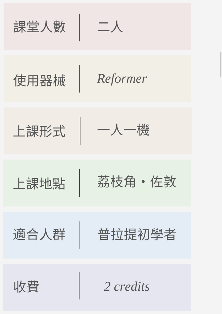 Foundation屬於「打底」課程透過一人一機+細緻觀察,能幫你先學好呼吸、對齊同發力方法這樣之後你去上多人班時,會更加易跟得上、又唔怕做錯